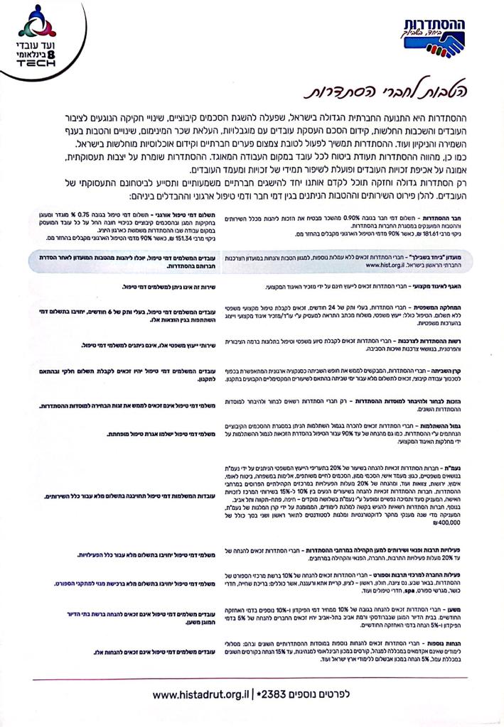 עובד שחתם על טופס חבר הסתדרות, תשלום דמי החבר שלו יעמוד על 0.90% מהשכר החודשי (ולא יותר מ- 203.73 ₪ בחודש)